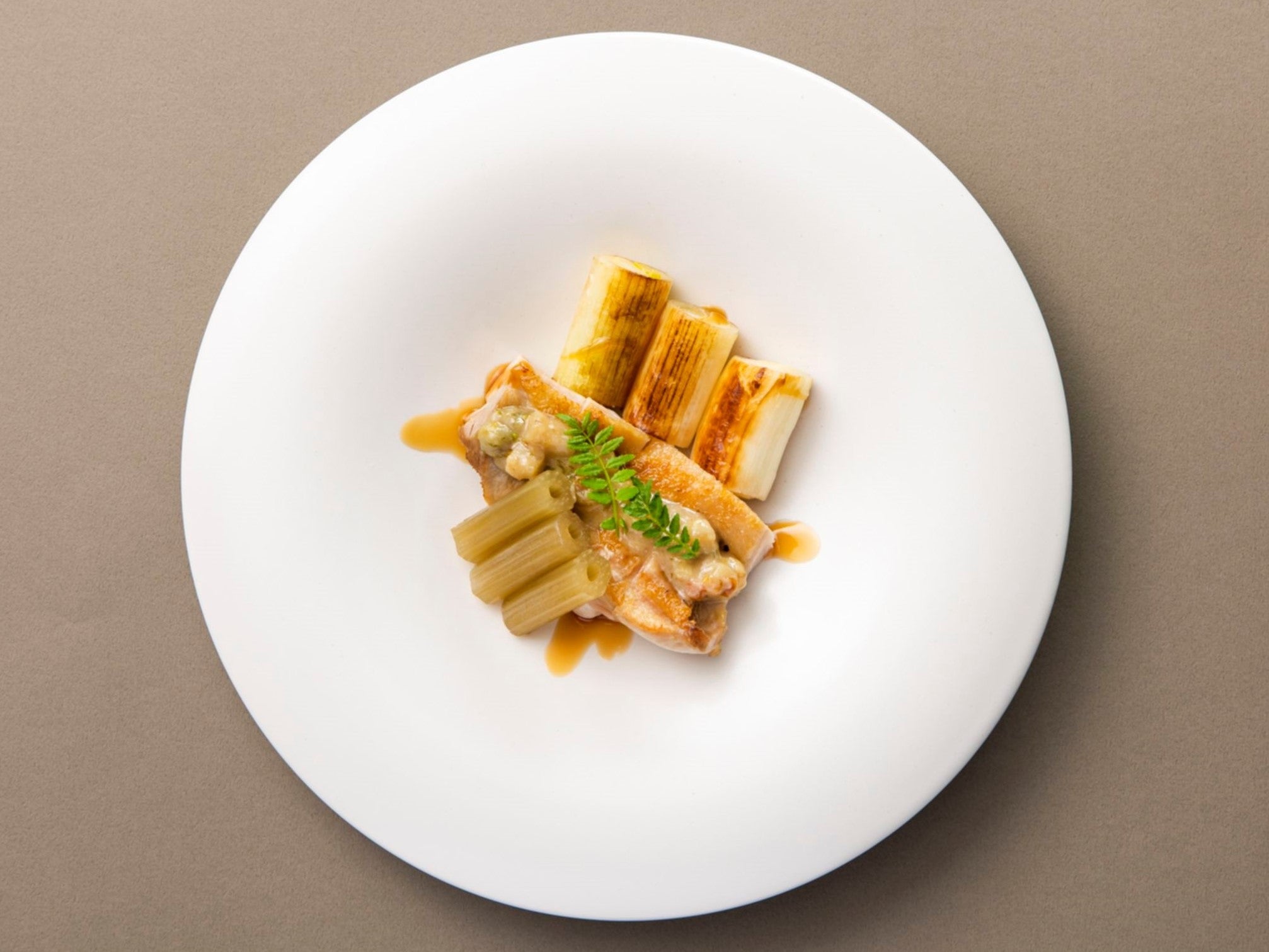 ・千葉県産錦爽鶏のロースト 千葉佐倉の味噌のグラチネ(写真右)