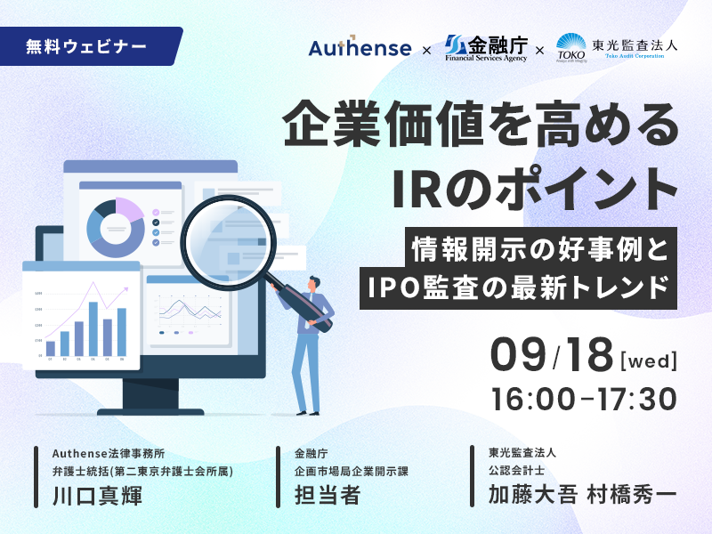 【無料ウェビナー開催2024.9.18】企業価値を高めるIRのポイント。情報開示の好事例とIPO監査の最新トレンド|Authense法律事務所