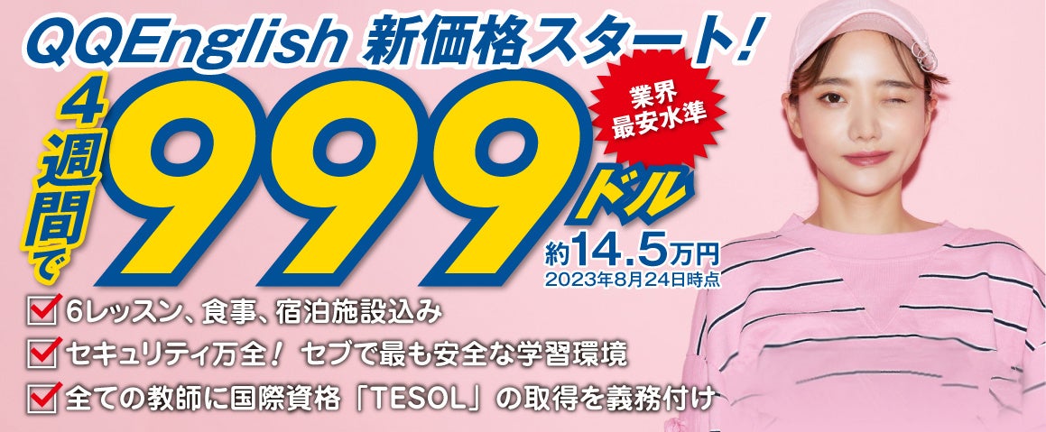 4週間の留学費用が999ドルに!?セブ島の語学学校「QQEnglish」が10月1日より新価格スタート