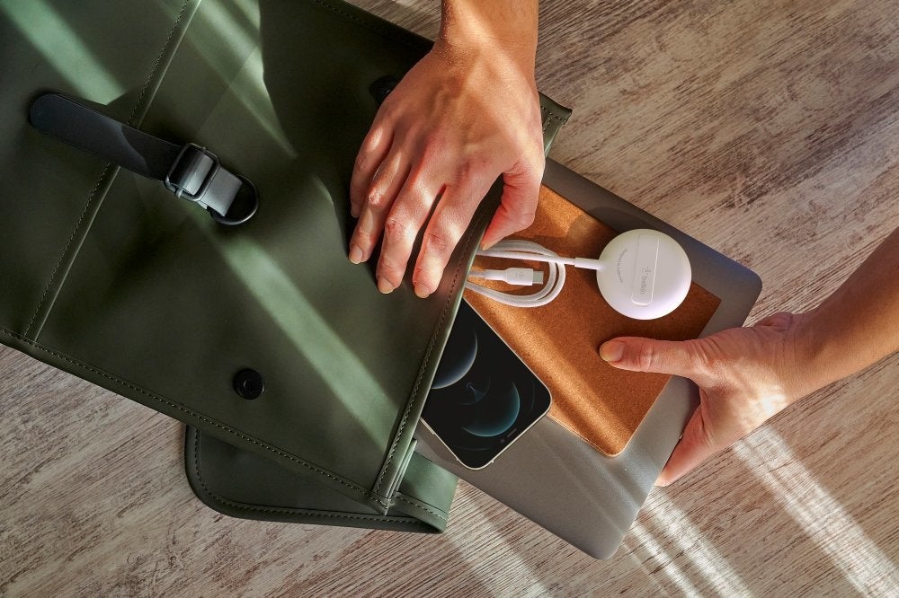 スリムな形状と軽量設計を採用し、リモートワークや旅行での持ち運びにも便利です。ハンドバッグや機内持ち込み手荷物にコンパクトに収まり、MacBookから充電することもできます。
