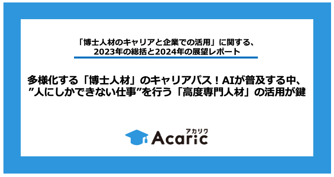 アカリク、「博士人材のキャリアと企業での活用」に関する、2023年の総括と2024年の展望レポートを発表