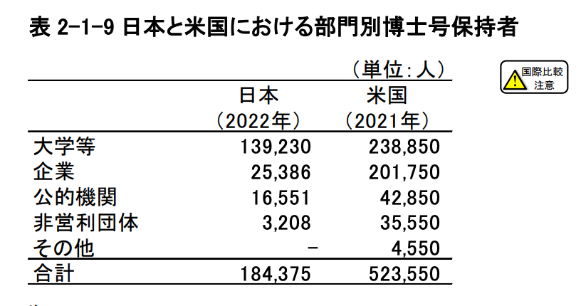 2.世界と比べれば企業で活躍する博士人材は少ない