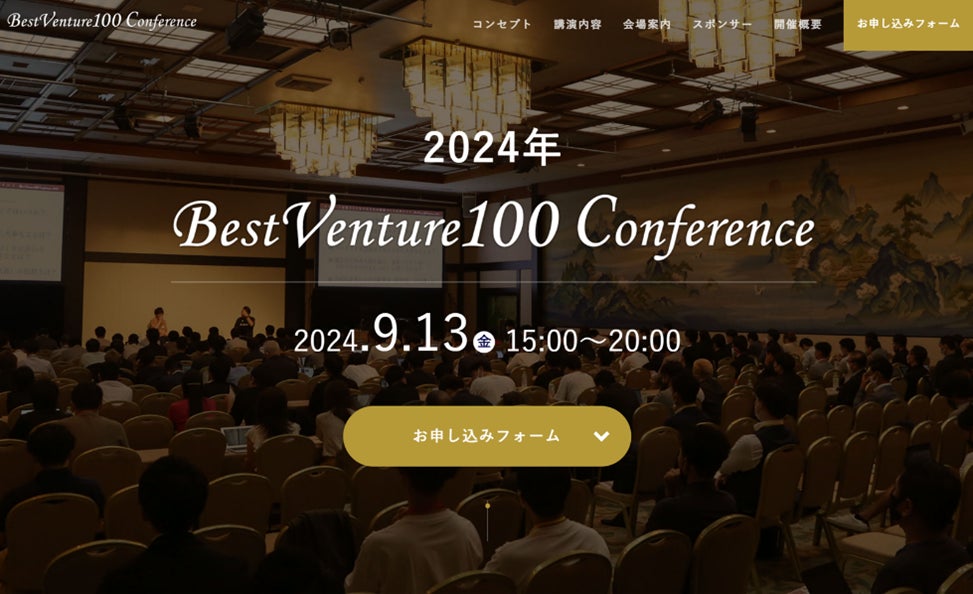 「ベストベンチャー100カンファレンス」は、これから成長が期待されるベンチャー企業を100社紹介する有料会員制サービス「ベストベンチャー100」に表彰された100社と、任意の経営者をゲストとして招待し、今回が18回目の開催となります。