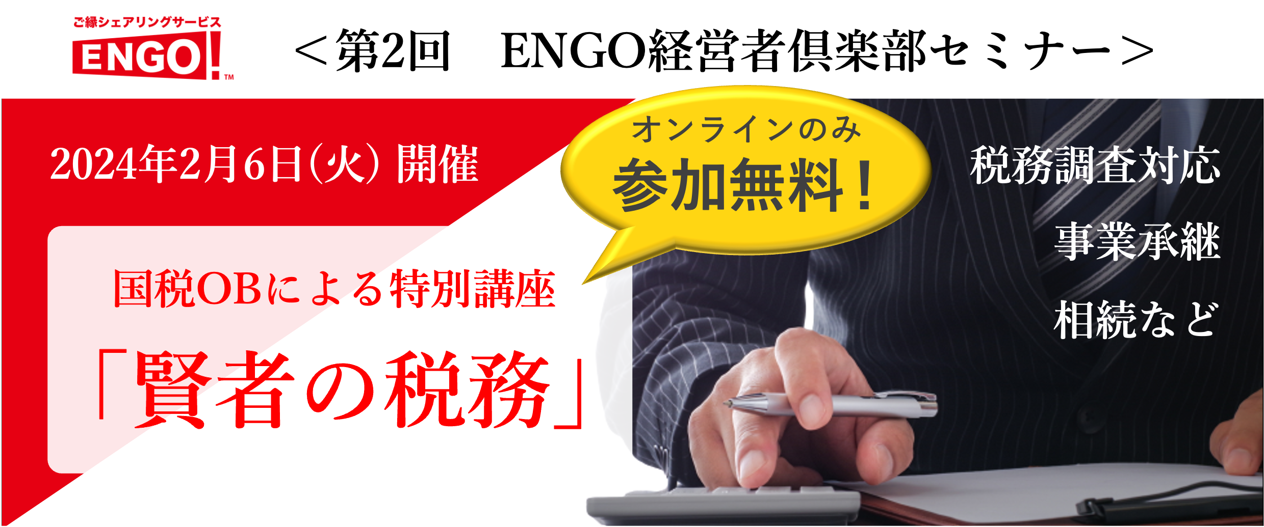 ENGO経営者倶楽部では、国税OB、警視庁OBのスペシャリストとの相談サービスも予定しております。