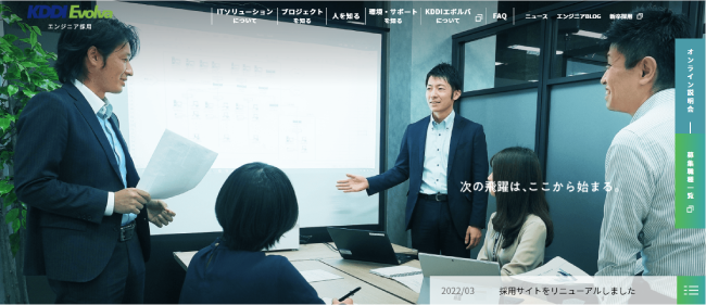 KDDIエボルバは、今後も幅広い業務フィールドの中で最先端の技術に触れながらスキルアップを実現していける働く環境を全てのエンジニアに提供するとともに、採用サイトを通じて当社でのこれからのキャリアをより具体的に描き、かつ安心して転職活動を行えるように、継続的なサイト改善とコンテンツ拡充をはかってまいります。