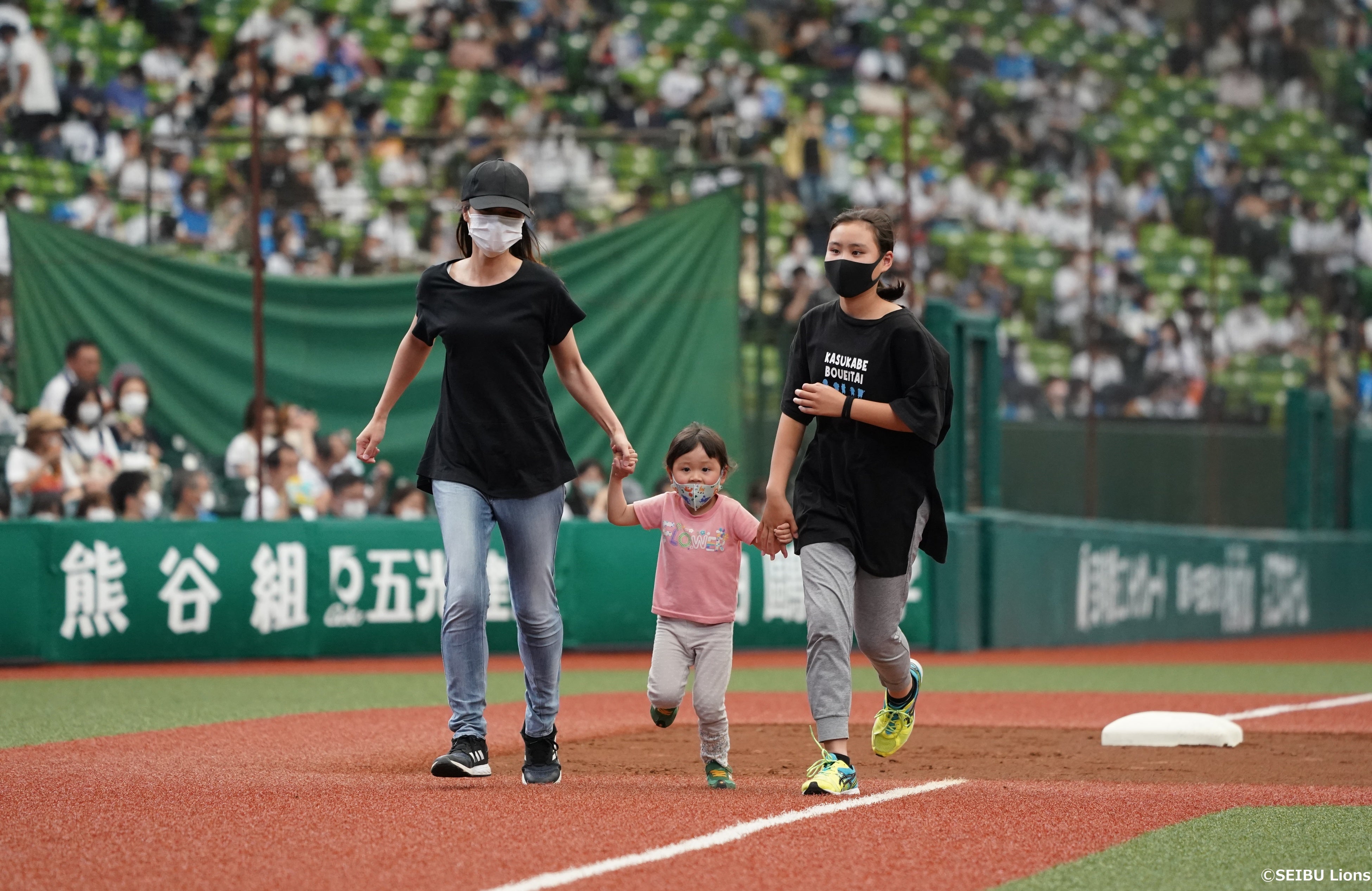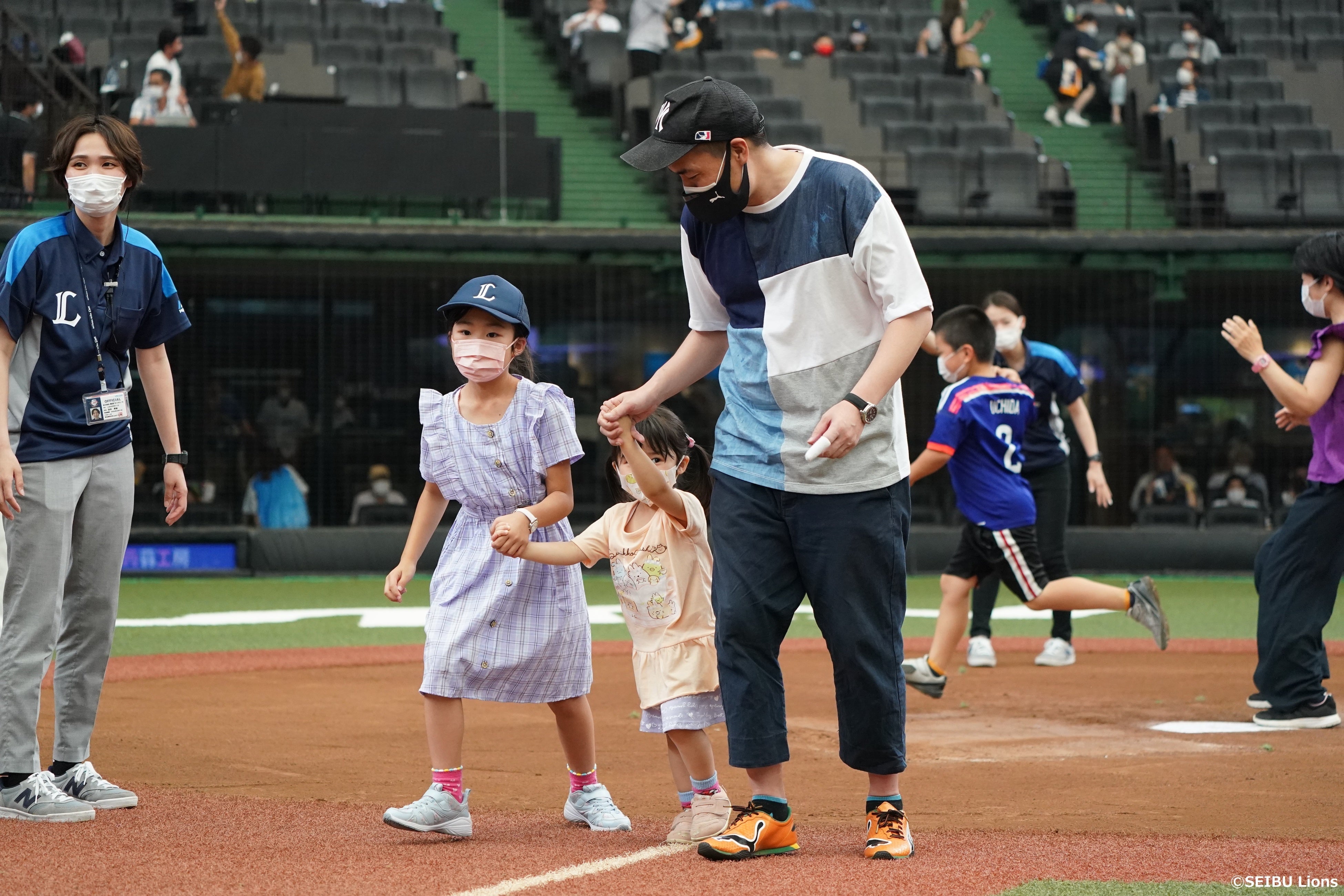 6月19日(日)にベルーナドームで行われた埼玉西武ライオンズ VS オリックス・バファローズ戦では、エッセンシャルワーカーの方でお子さんを持つご家族10組20名様を試合前のイベントにご招待し、グラウンドに出て親子でベースランニングという非日常体験をお楽しみいただきました。
