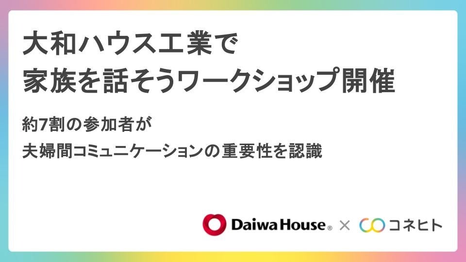 コネヒト株式会社(本社:東京都港区、代表取締役社長 杉井 信一郎、以下「コネヒト」)は、9月1日「家族を話そうワークショップ」を大和ハウス工業株式会社(本社:大阪市、代表取締役社長:芳井 敬一、以下「大和ハウス工業」)で開催したことをお知らせいたします。