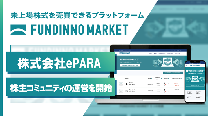 株式会社FUNDINNO(本社:東京都品川区、代表:柴原 祐喜/大浦 学、以下「FUNDINNO」)は、2022年10月28 日(金)、FUNDINNO MARKETにおいて株式会社ePARA(代表取締役:加藤 大貴)の株主コミュニティを組成し、運営を開始いたしました。