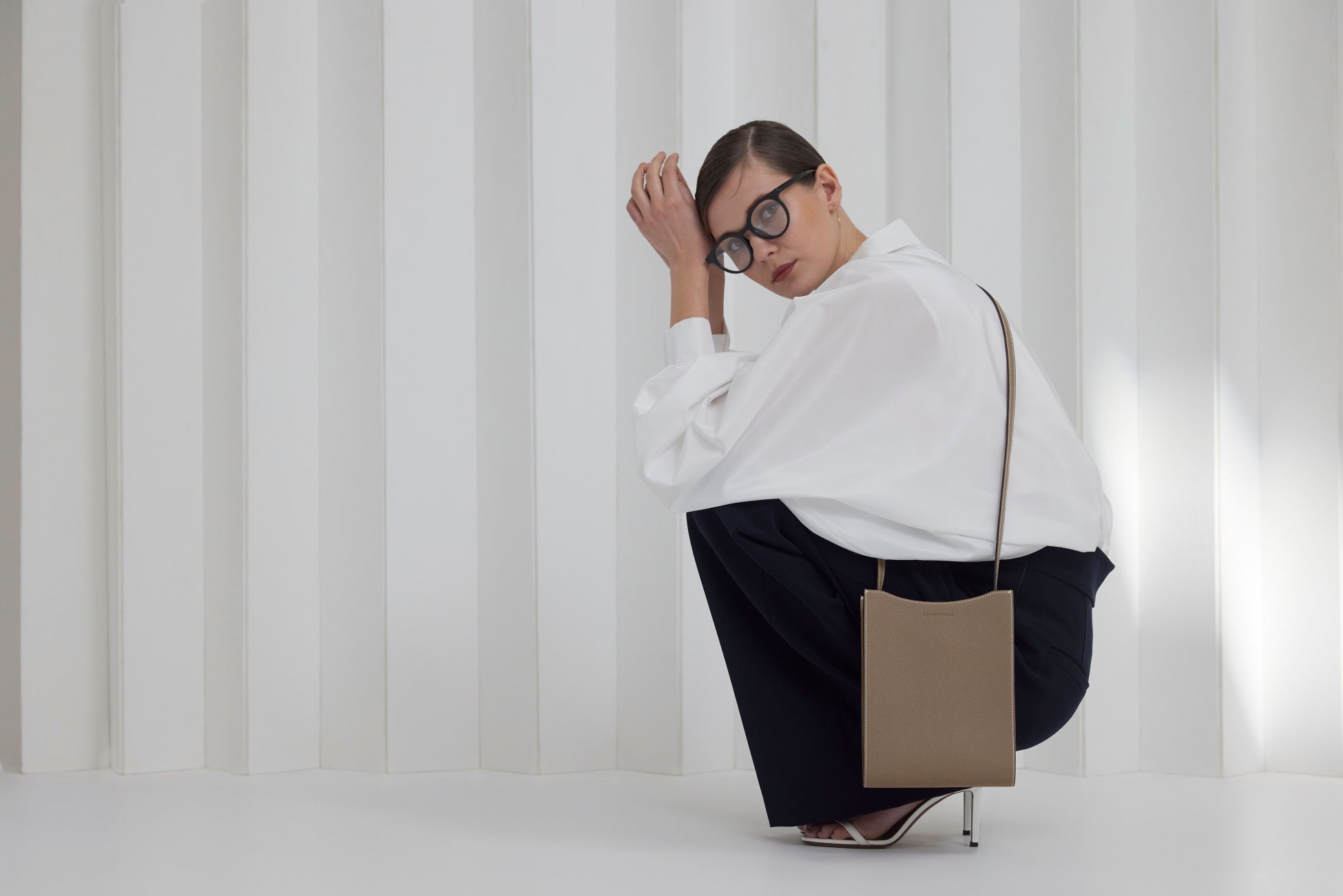 ミニマルながらB5サイズも入るユニセックスなショルダーバッグ