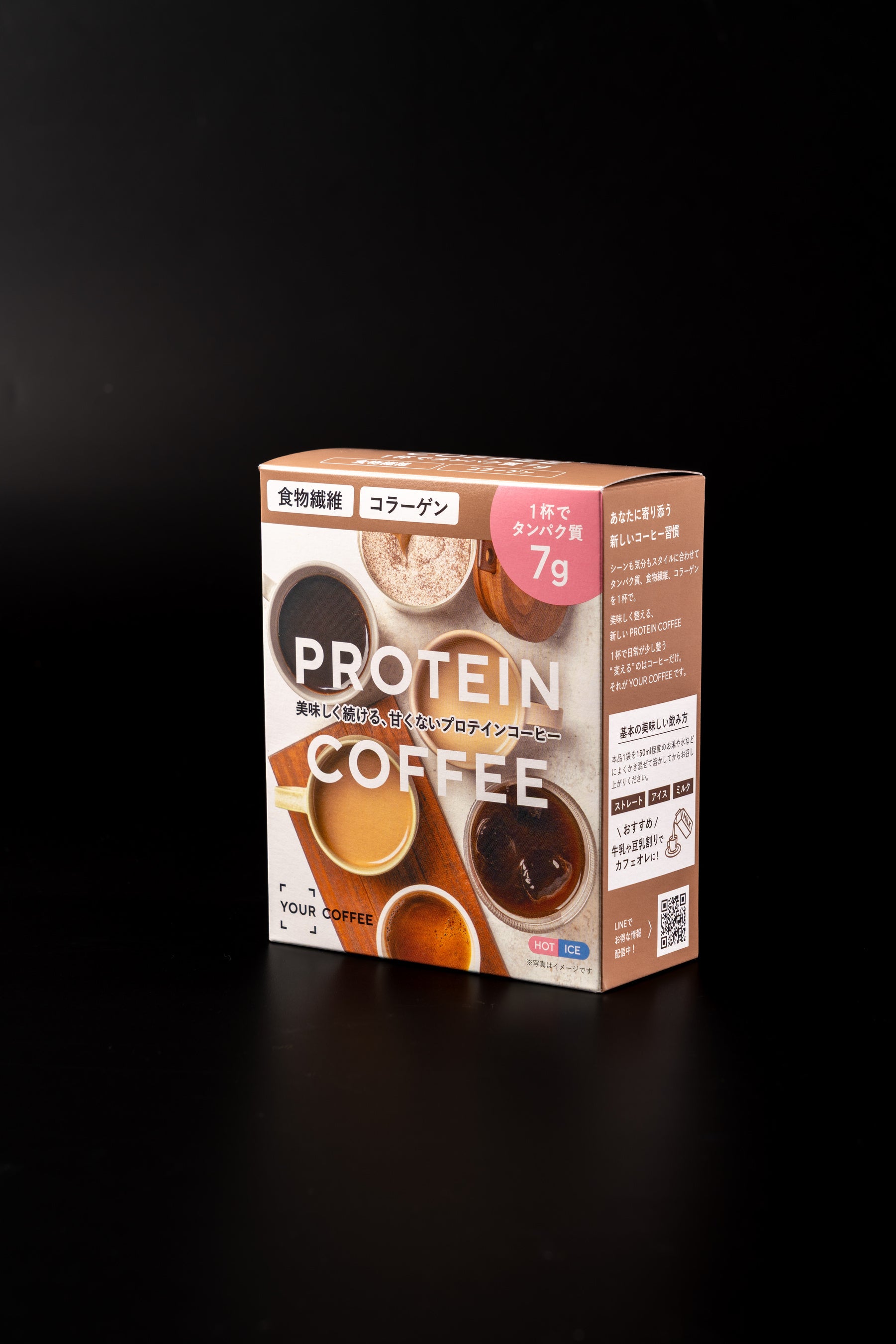 YOUR COFFEEは、「あなたに寄り添うコーヒー習慣」をコンセプトにしたプロテインコーヒーブランドです。普段のコーヒーを置き換えるだけで、タンパク質や食物繊維などを手軽に取り入れられる、毎日の健康習慣を支えるブランドとして展開しています。