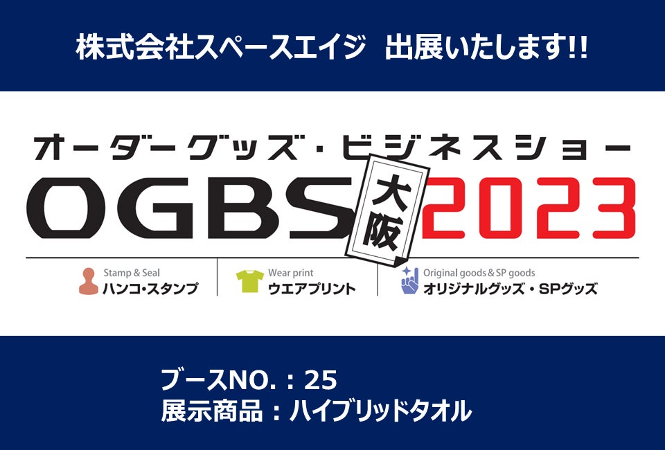 株式会社スペースエイジ(本社:広島県広島市、代表取締役:吉岡憲治)は、2023年1月25日(水)・26日(木)に大阪で開催される「オーダーグッズ・ビジネスショー大阪2023」に出展いたします。