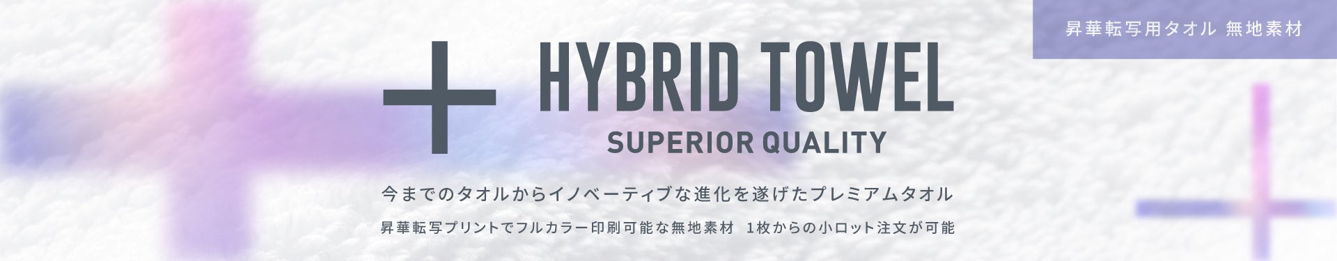 ハイブリッドタオルは、【抜群の吸水性・ふわふわの肌触り】と【鮮明なグラフィックの表現性】を兼ね備えた全く新しい昇華転写用タオルで、小ロット/短納期にも対応しております。