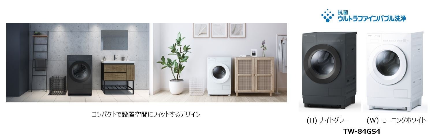 新製品では、洗濯容量[注1]8kg、乾燥容量[注2]4kgとまとめ洗いができる容量でありながら、ボディ幅・奥行599mm[※1]のコンパクトサイズを実現。さらに当社独自の技術「抗菌ウルトラファインバブル洗浄」も搭載しています。設置スペースの制約でドラム式洗濯乾燥機を諦めていた方だけでなく、一人暮らしや少人数世帯にもおすすめです。