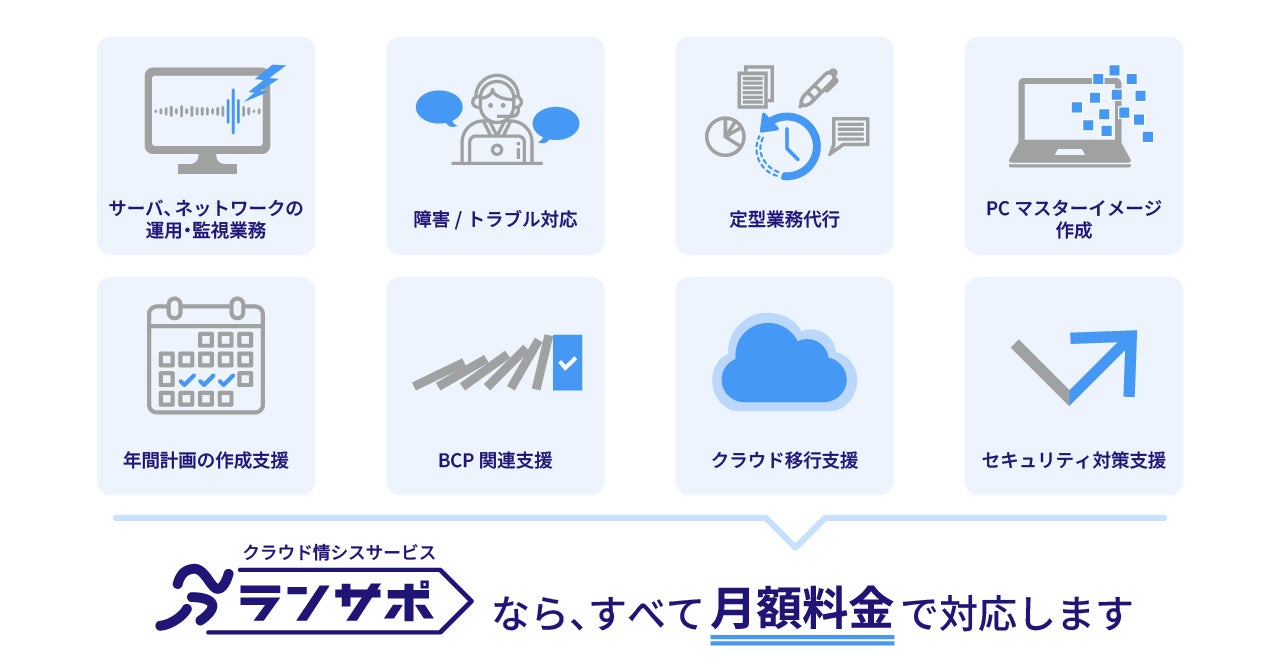 「ランサポ」は、情報システム業務をクラウドから支援する、クラウド情シスサービスです。