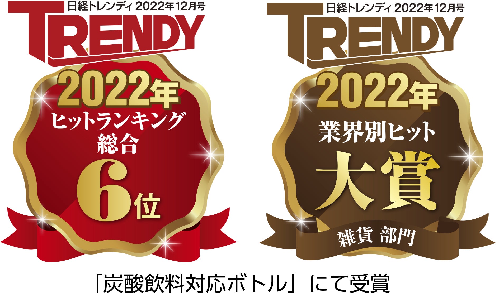 2022年1月に発売した当社初の真空断熱炭酸ボトルは、炭酸飲料のおいしさをキープしたまま、安全に持ち運びができることで、多くのお客様にご支持いただき、雑誌 日経トレンディ(日経BP刊)「2022年ヒット商品ベスト30」6位/「2022年業界別ヒット大賞 雑貨部門」受賞、雑誌 DIME(小学館刊) 「2022 第35回 小学館DIMEトレンド大賞 日用品部門 金賞」受賞など、高い評価をいただきました。