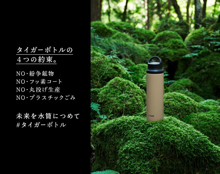 健康配慮、人権配慮、環境配慮を実現するためにタイガー真空断熱ボトルでは、「NO・紛争鉱物」「NO・フッ素コート」「NO・丸投げ生産」「NO・プラスチックごみ」の4つの約束を掲げています。