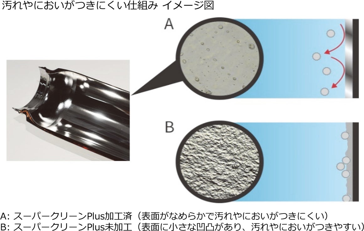 汚れやにおいがつきにくく、炭酸の気化をおさえる「スーパークリーンPlus(プラス)」加工