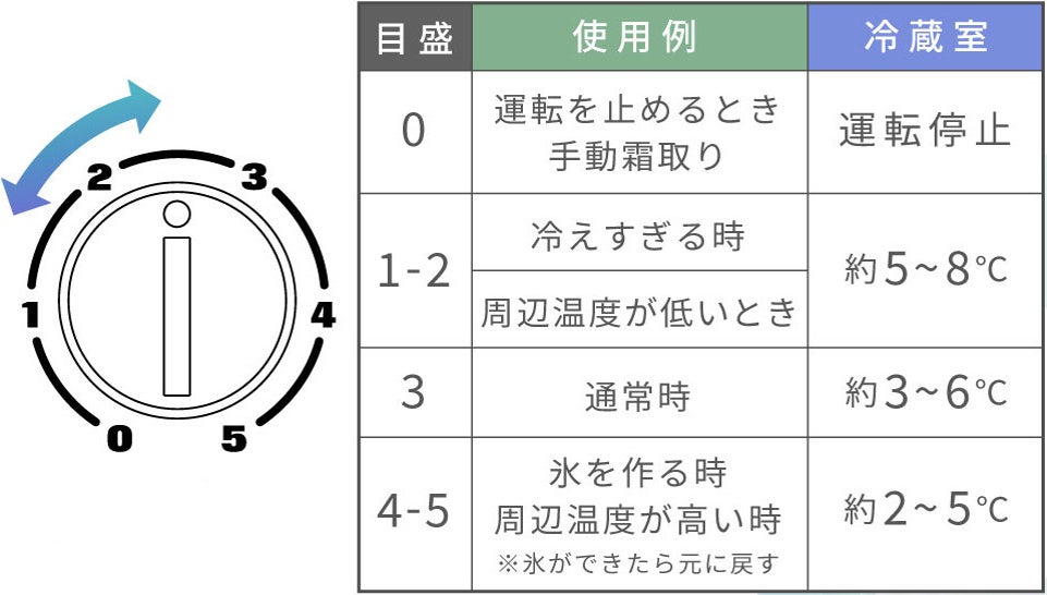 内容量に合わせて冷蔵庫と冷凍室の冷却温度を段階調節できます。