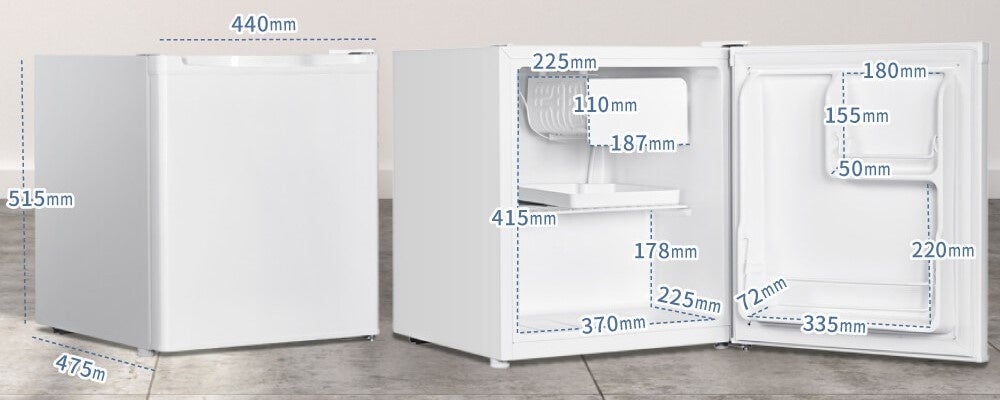 幅44.0cm、奥行47.5cm、高さ51.5cmのコンパクトなサイズのため、ちょっとした空間に収まる使いやすいサイズ感です。今の冷蔵庫に1台プラスして使えば、まとめ買いした食品の保管スペースに困りません。また、製氷機能を搭載しているため、これからの暑い季節にはリビングや寝室に置いて手軽に冷たいドリンクを楽しむことができます。シーンに合わせて便利にお使いいただけるセカンド冷蔵庫です。