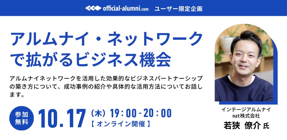 Official-Alumni.comユーザー限定:10/17(木)セミナー開催!『 アルムナイ・ネットワークで拡がるビジネス機会 』