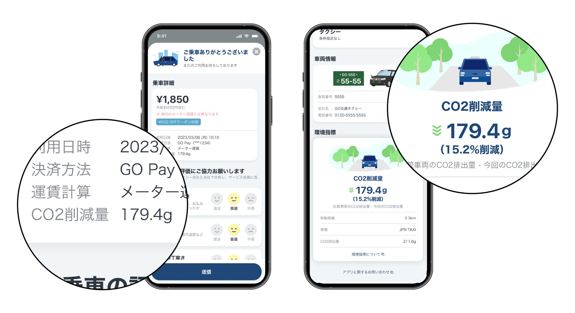 No.1タクシーアプリ『GO』 ご利用時のCO2排出量・削減量の表示を開始