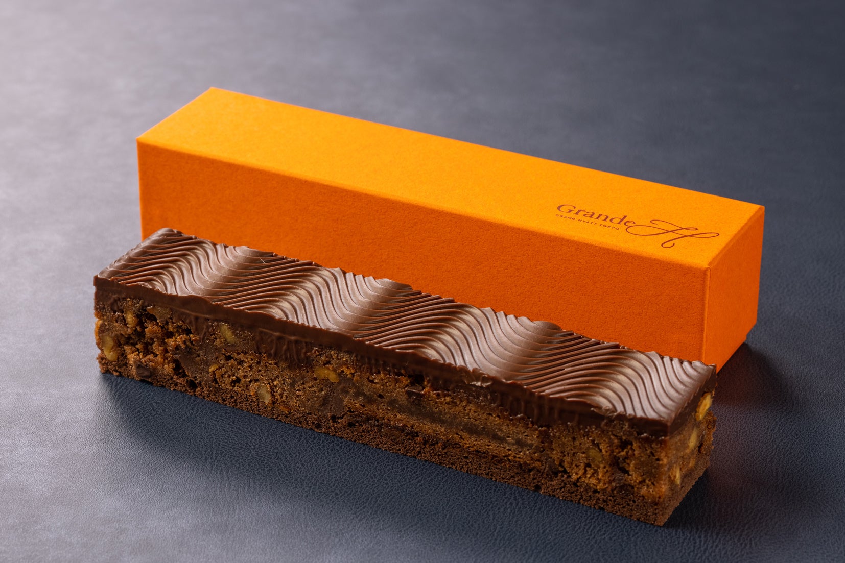 グランド ハイアット 東京のペストリー料理長の金子浩(かねこ ひろし)が、1842年創業の仏「カカオバリー®」へ赴き、オリジナルチョコレートを制作。流通量が少ない希少なタンザニア産カカオとその起源と言われるメキシコ産カカオを組み合わせ、カカオ約70%に仕上げました。タンザニア産は複雑なナッツ感と爽やかなフルーティーさが特徴。さらにメキシコ産は力強いカカオ感があり、リコリス(天草)の香りの広がりの中にスパイシーさとウッディさを感じられます。酸味とカカオの強い苦みが程よく組み合わさり、濃厚で力強いカカオ感とスパイシーさやウッディさなどのアロマを感じていただけます。さらに香ばしさと深みのある甘さが最高のハーモニーを奏でます。「Grande H」と名付けたこのチョコレートはホテルの名前のイタリア語である「Grande(グランデ)」とハイアットと金子の名前の頭文字である「H」に由来しています。