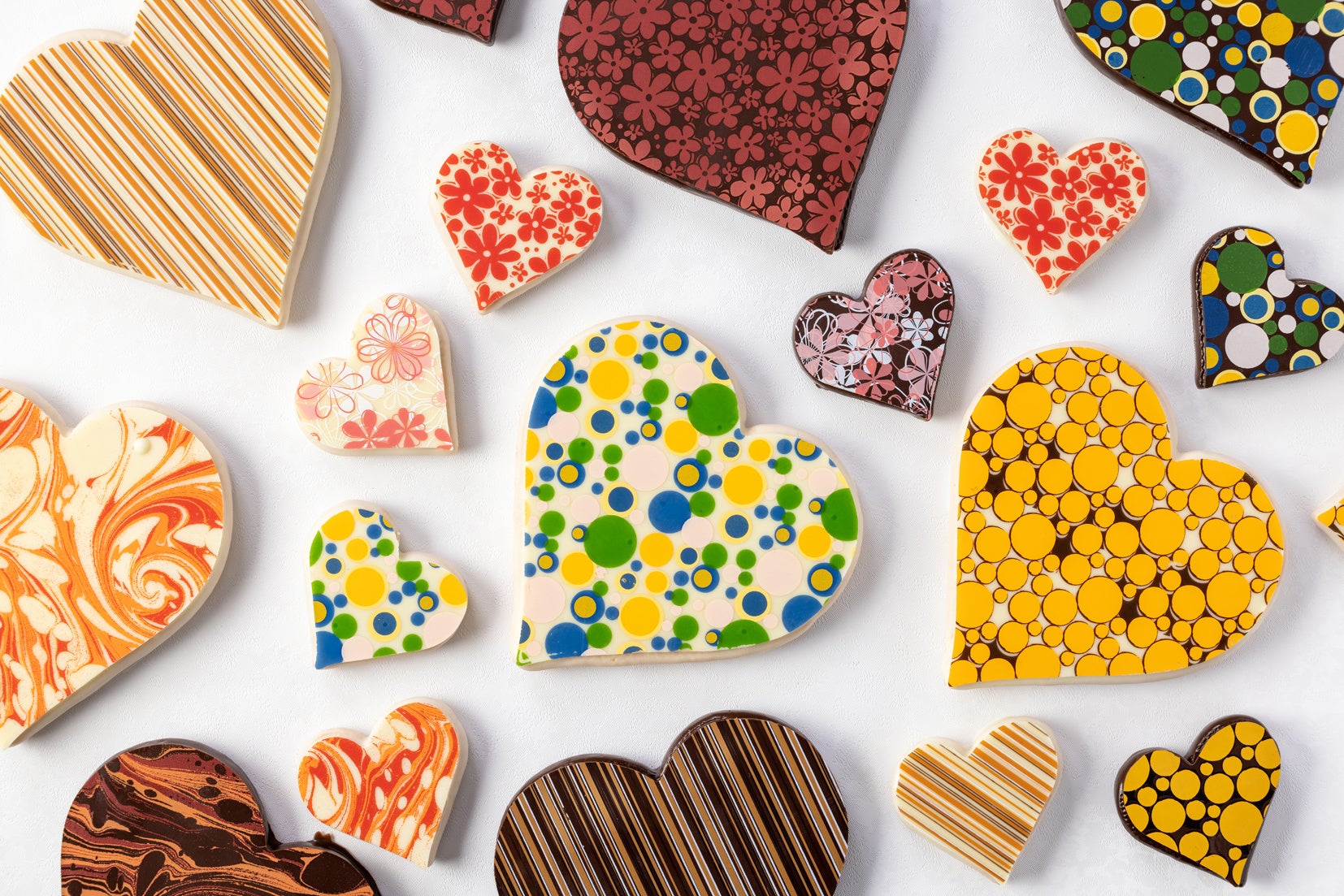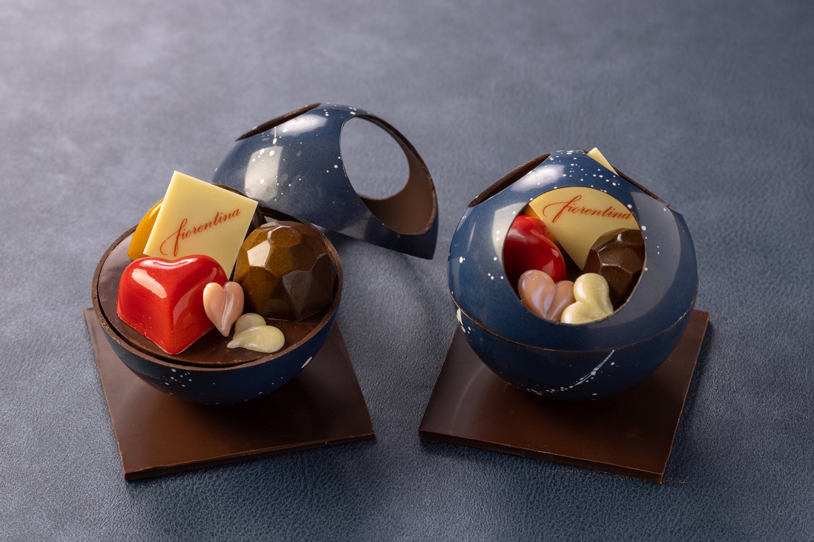 惑星のような球体型チョコにボンボンショコラを忍ばせたチョコレートやハート型ケーキなど遊び心溢れる個性的な全14種類