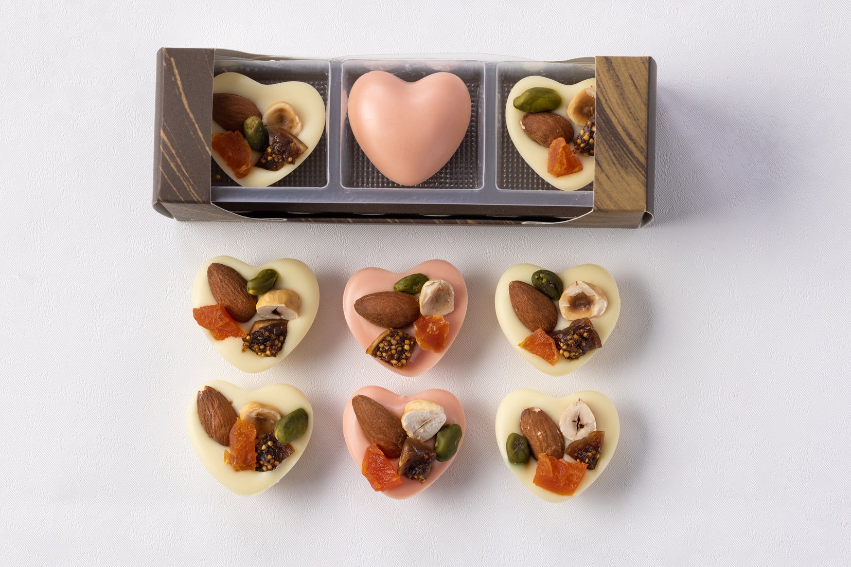 2月1日(火)~14日(月)の期間に登場するのは、バレンタインのギフトに最適な7種類のスイーツとブレッド。上から見るとケーキ自体がハート型になっている遊び心溢れるプレミアム チョコレートケーキをはじめ、グランド ハイアット 東京の名を冠したホテルオリジナルのチョコレート「Grande H」でつくるスイーツの数々が揃います。また、3月1日(火)~14日(月)の期間には、赤やピンクの華やかでカラフルな7種類のホワイトデー期間限定のスイーツとブレッドをご用意いたします。バレンタインと同じくケーキ自体がハート型のプレミアム ケーキのショートケーキバージョンをはじめ、“Love you”や“Thank you”など、日ごろの想いをデコレーションしたクッキーなどを販売いたします。また、どちらの期間にも、まるで繊細なオブジェのように仕上げる球体型チョコレートにボンボンショコラは忍ばせた「コフレボックス」が登場いたします。