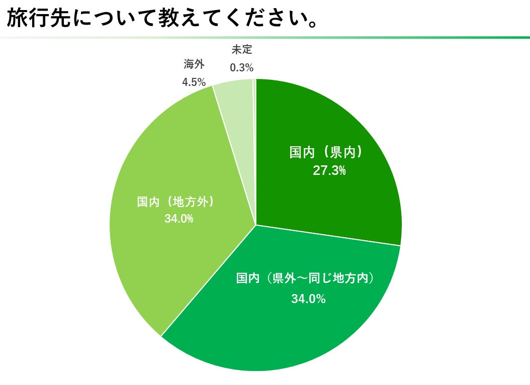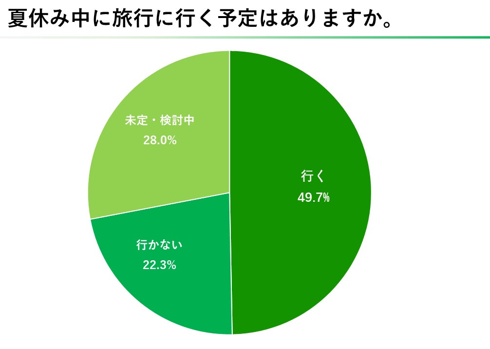 夏休み中の旅行の予定については、49.7%が「行く」と回答。行くと回答した方に旅行先の予定について伺ったところ、約7割が国内かつ県外に行くと回答しました。