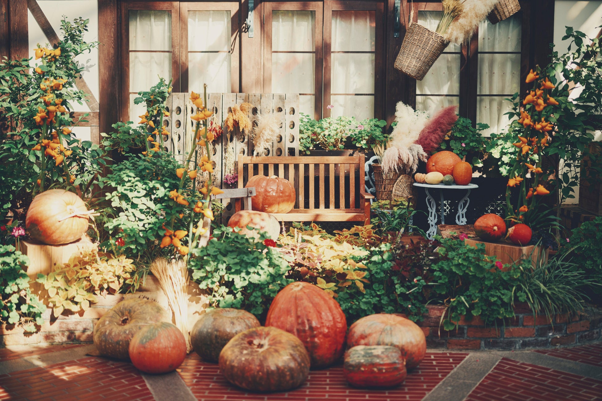お散歩にぴったりの季節。ガーデンは、色鮮やかなハーブや花々で彩られます。各ガーデンには、この時季ならではのハロウィンディスプレイも登場します