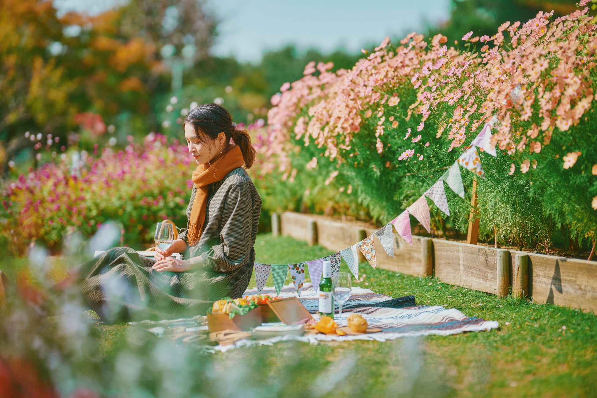 お弁当やワイン、焼き菓子、レジャーシート、カトラリー、ドライフラワー、ガーランドなどおしゃピクアイテムがセットになった「ガーデンピクニック」。秋の彩りたっぷりのガーデンで、手ぶらでワンランク上のピクニックを楽しみませんか