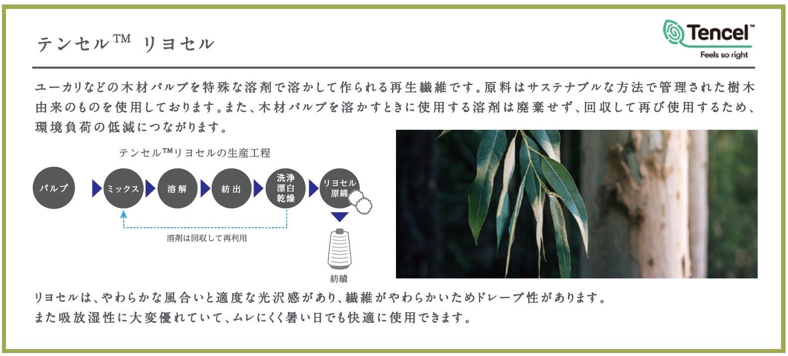 新アイテムのキルトケットとガーゼケットにはユーカリなどの木材パルプから作られる「テンセル™リヨセル」を使用。吸水性に優れ、蒸れにくい特長があります。ソフトな風合いや光沢感、ドレープ性のある柔らかな手触りが特徴で、肌に優しく快適な睡眠空間をサポートします。