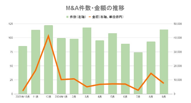【9月M&Aレポート】115件で前年同月比38件増、金額は前年同月比2.27倍の7538億円
