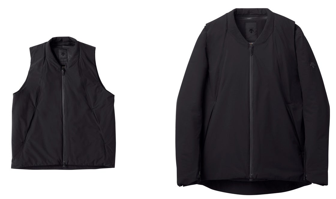今回は、『デサント』の水沢ダウンの中でもハイスペックモデルとして根強い人気のある「マウンテニア」のデザインを活かした「コネクト×水沢ダウン マウンテニア」に加え、今季のNEWアイテムとして、秋から冬にかけてより長い期間着用いただけるようダウンよりも少し薄手で中わたを使用した防水機能付き防寒アイテム「コネクト×インシュレータージャケット」を新発売。各商品ではお客様のライフスタイルやニーズに合わせて、首回りからの冷気の侵入を妨げて保温性を高めるフード付きパーツと、センターユニット単体でベストとしても着用できるフード無しパーツという2通りのセンターユニットが選べるセット内容をご用意しています。また、今後は対応できるシーンや用途の幅をより広げていただけるよう、シェルやジャケットの販売なども予定しています。