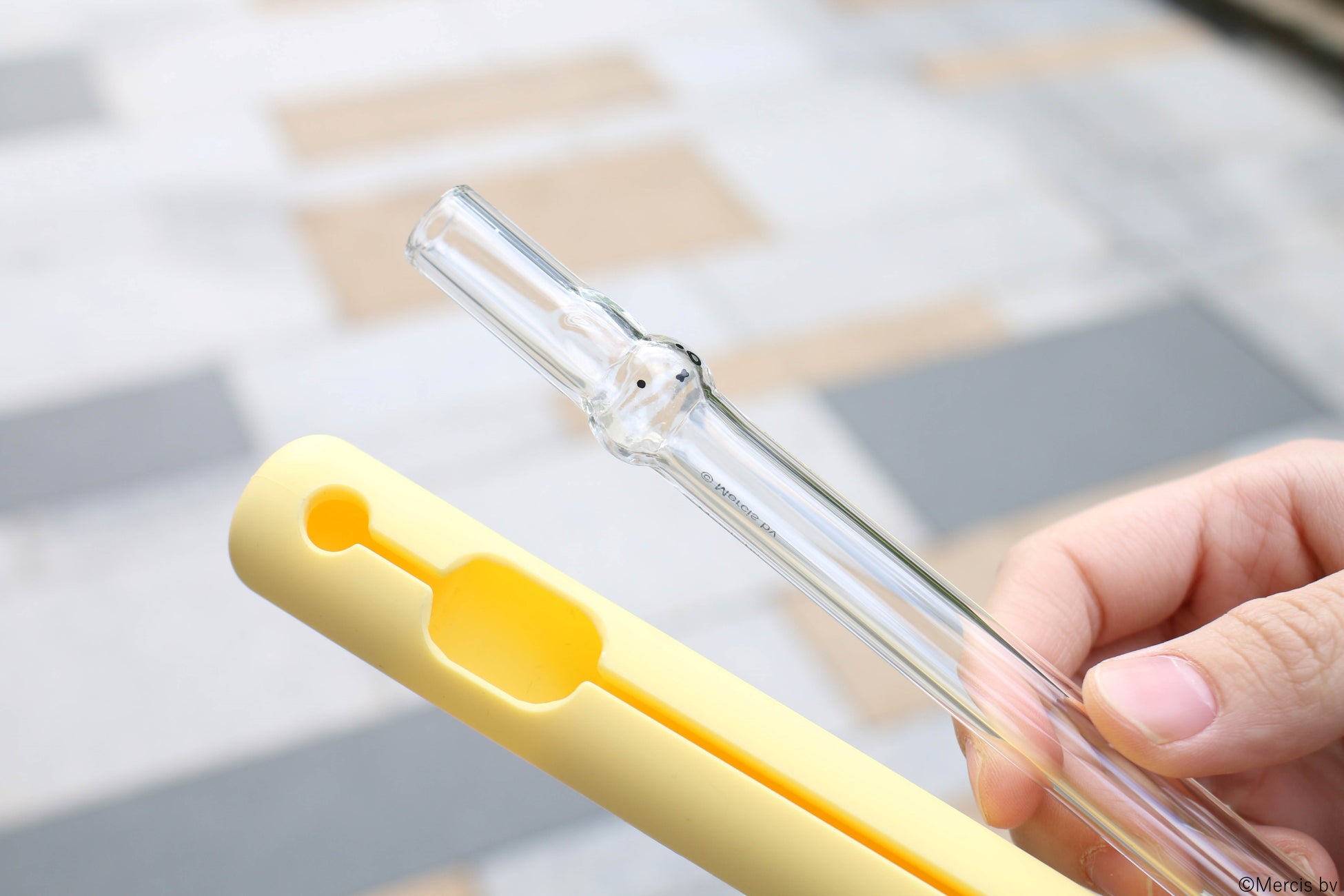 ガラス製マイストローはガラス職人により1本1本手作りされており、商品にはガラス製マイストローを保護し、持ち運ぶ際に便利なシリコンケースと洗浄ブラシがセットになっています。