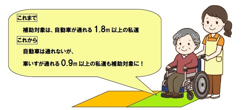 →自動車は通れないが車いすが通行できる道幅の私道も対象に。