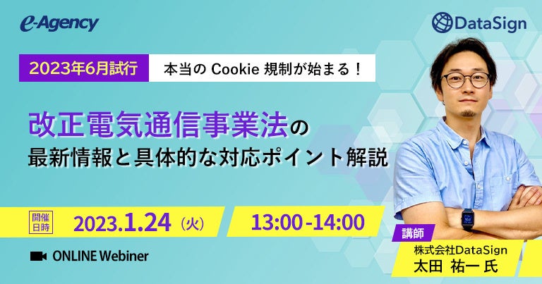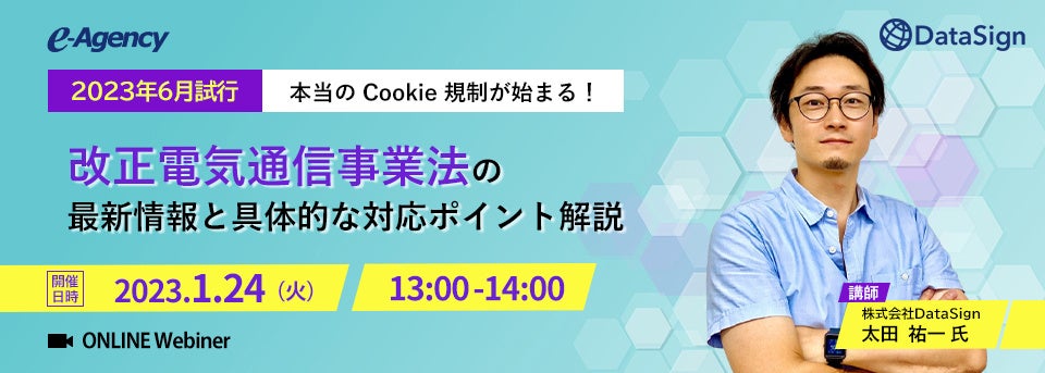 個人情報保護分野の第一人者であるDataSign社の太田 祐一氏を講師としてお招きし、今年6月に施行される電気通信事業法の改正について、確定情報と今後の見通しおよび具体的な対応ポイントを解説します。