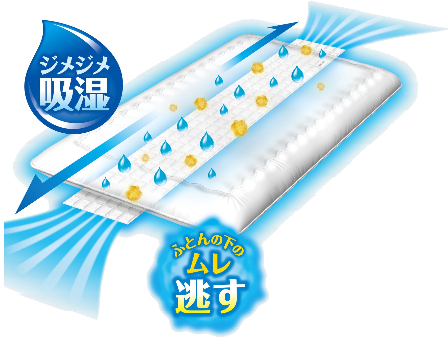 ●ふとんの下に敷くだけで、寝汗による湿気をたっぷり吸収!