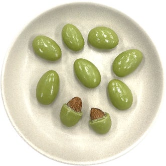 あるとき、アボカドを食べていたところ「なんだかアーモンドチョコに似ている」と思ったことから開発がスタート。よりアボカド感を出せるよう試行錯誤を重ね、外側のチョコレートをアボカドの色に近づけることに成功しました。まるでアボカド?と楽しんでいただける、遊び心あるチョコレートです。