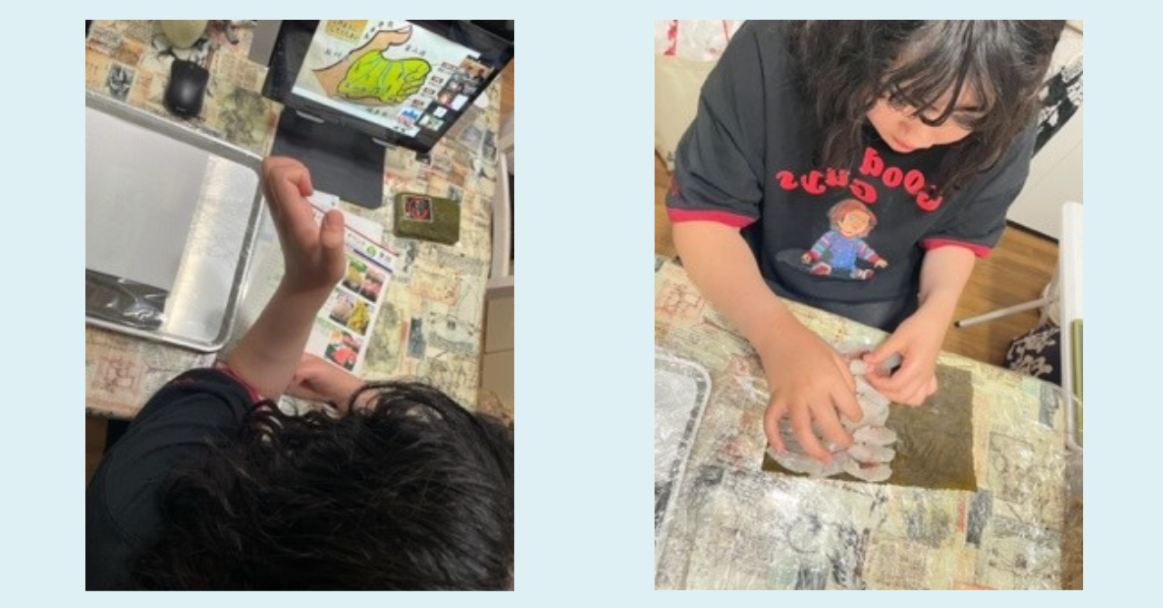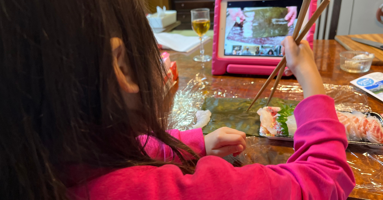 富山県の職人(料理人)が講師となり、全国の子ども達と直接オンラインで繋がり、富山の「独特な地理・自然」「歴史」「産業」「食文化」を調理体験しながら学ぶ授業を行いました。参加者のご自宅には、富山の食文化を代表する昆布〆の昆布を事前配送し、授業ではそれを使って伝統料理の昆布〆作りを本物の職人(料理人)である「日本橋とやま館・富山はま作」の料理長から実際に調理法と歴史を教えてもらう調理体験をしました。