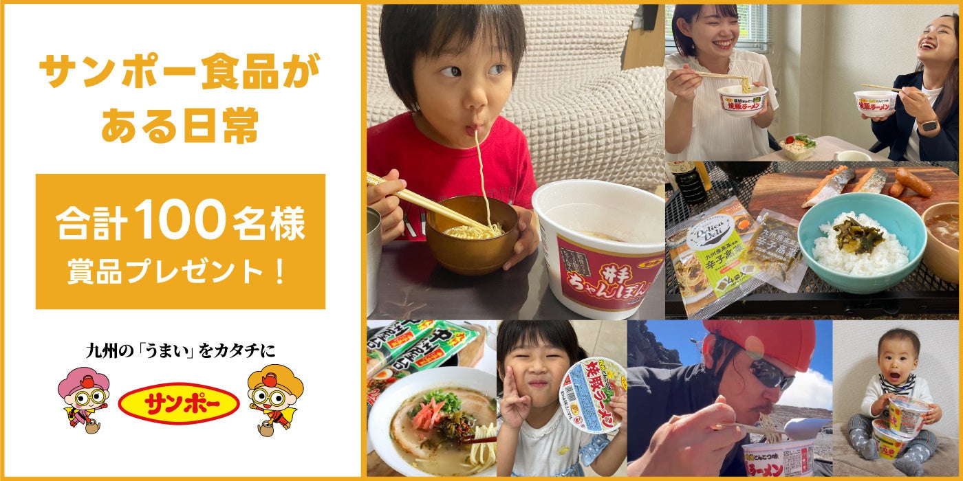 サンポー食品は、九州で創業100年を超える即席めんメーカーです。おなじみの「焼豚ラーメン」をはじめとする様々な商品をご愛顧いただいています。お客様から日々お寄せいただいている「休みの日のお昼に食べるよ」、「いつもストックしています」などの嬉しいお声をカタチにして、みなさまの笑顔がつながる機会にしたいと思い、フォトコンテストを開催する運びとなりました。