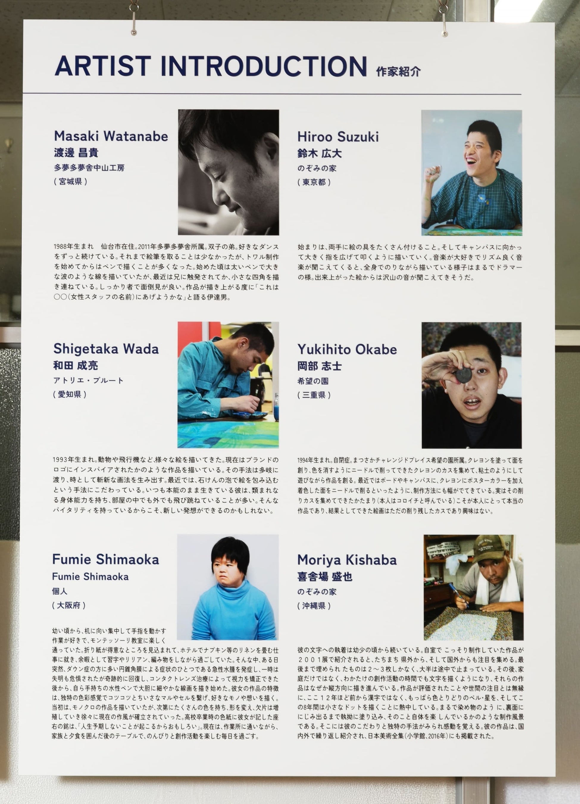 双子の弟。好きなダンスをずっと続けている。それまで絵筆を取ることは少なくなかったが、トワル制作を始めてからはペンで描くことが多くなった。始めた頃は太いペンで大きな波のような線を描いていたが、最近兄に触発されてか、小さな四角を描き連ねている。しっかり者で面倒見が良い。作品が描き上がる度に「これは〇〇(女性スタッフの名前)にあげようかな」と語る伊達男。