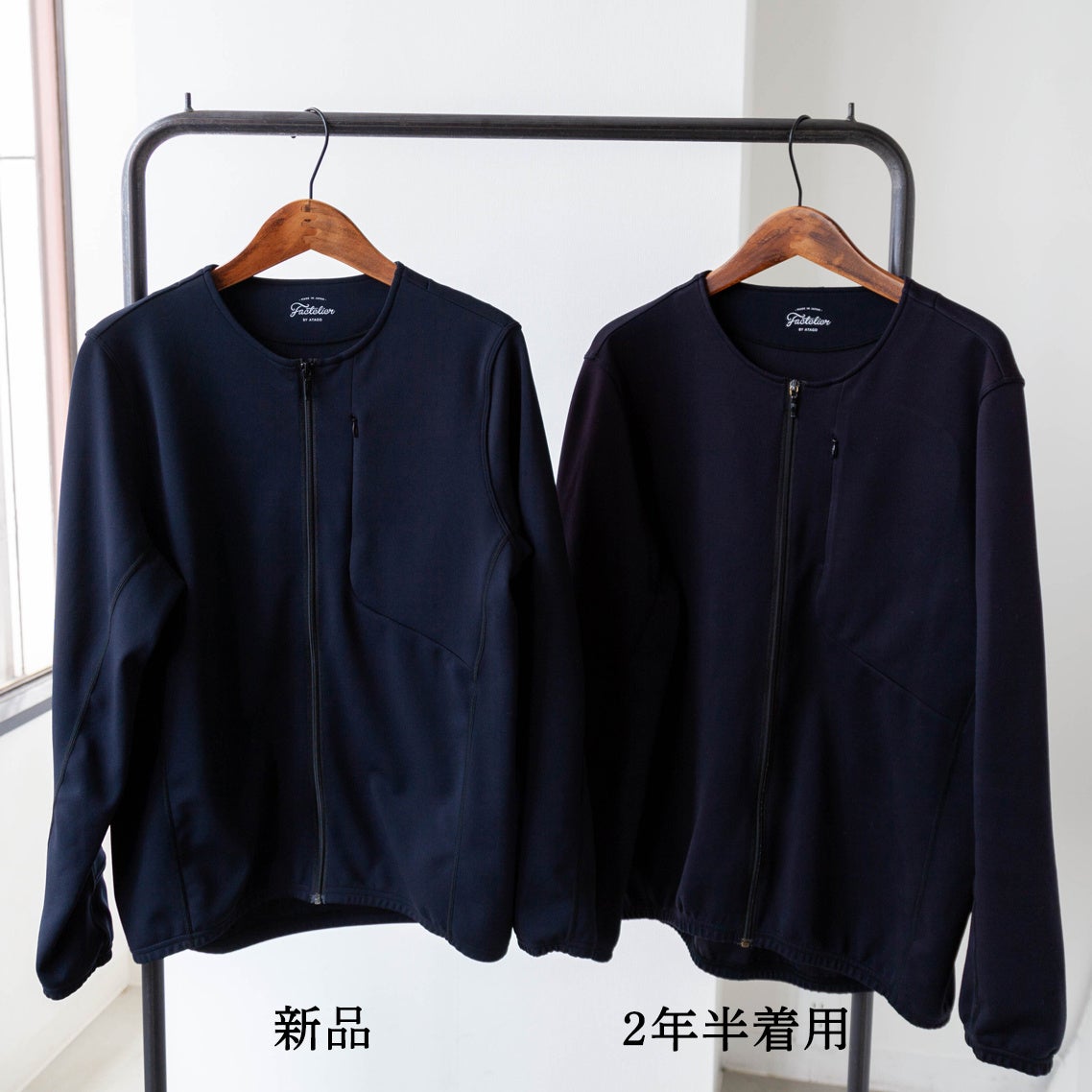 実際にファクトリエスタッフが2年半ほぼ毎日着用&週3回洗濯しつづけたエアーブルゾンと、新品のエアーブルゾンを比較してみました。