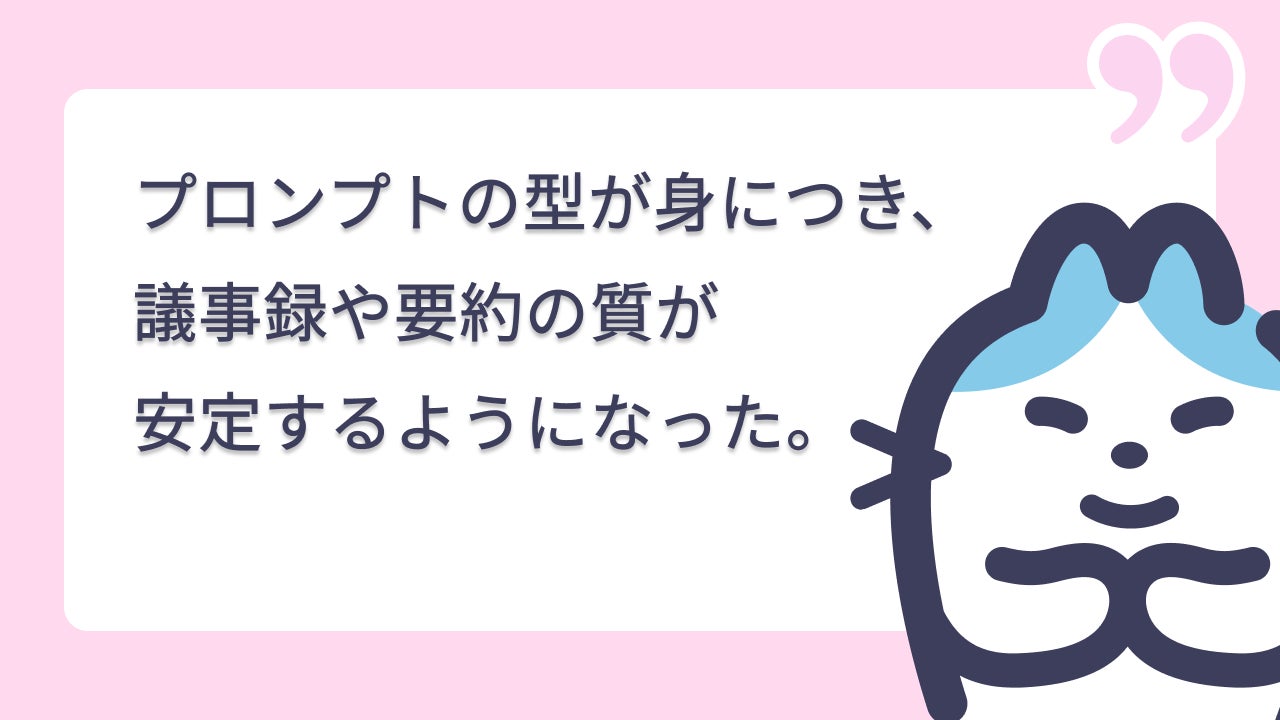 ・定例レポートや文書作成の型を標準化し、属人化を抑制
