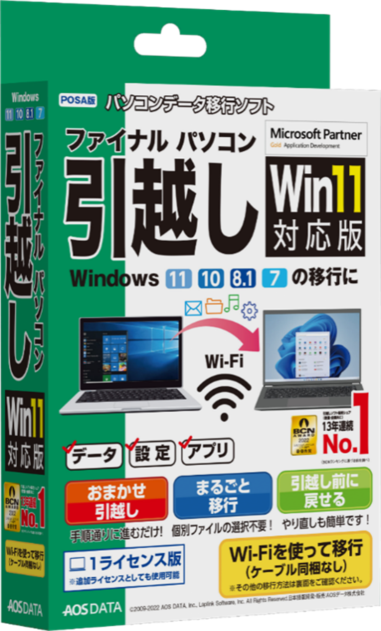 AOSデータ社、国内累計販売本数No.1 パソコンデータ移行ソフト「ファイナルパソコン引越しWin11対応版(POSA)」を発売開始