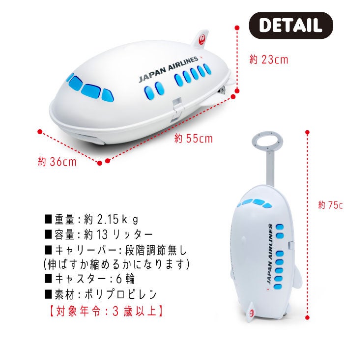 JAL飛行機型キャリーケースはJALのオフィシャルライセンス商品です。