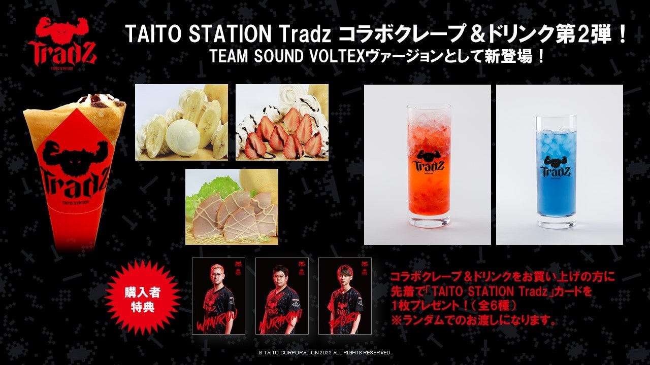 大変多くの反響をいただいているTradzコラボクレープとドリンクの第2弾がTEAM SOUND VOLTEXヴァージョンとして2月6日(月)より発売決定!