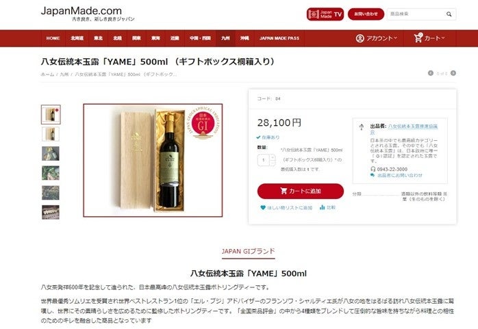 また、この度、JAPAN MADE事務局が運営する「地理的表示保護制度(GI)※」を取得した地域ブランド産品専門店「Japanマルシェ」でも、八女伝統本玉露「YAME」の販売が開始されました。