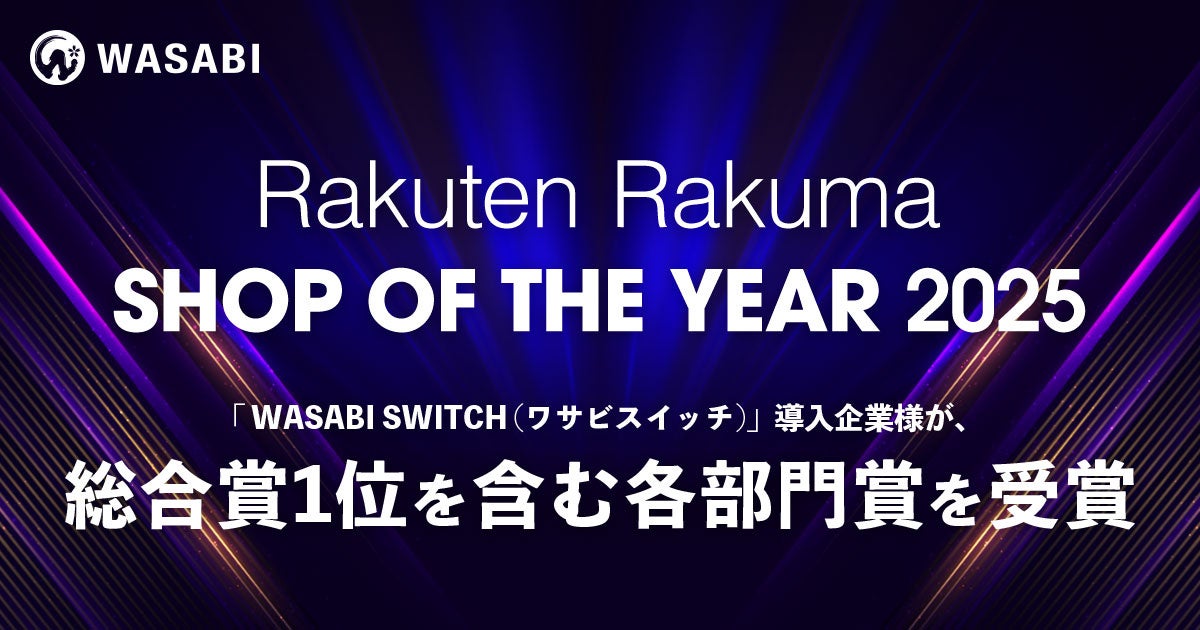 株式会社ワサビ(本社:大阪府大阪市、代表取締役:大久保裕史、以下「ワサビ」)が提供する、リユース特化型EC一元管理システム「WASABI SWITCH(ワサビスイッチ)」の導入企業様が、楽天グループ株式会社が提供するフリマアプリ「楽天ラクマ」主催の第4回「楽天ラクマショップ・オブ・ザ・イヤー2025」において、総合賞1位をはじめとする各部門賞を多数受賞いたしました。
