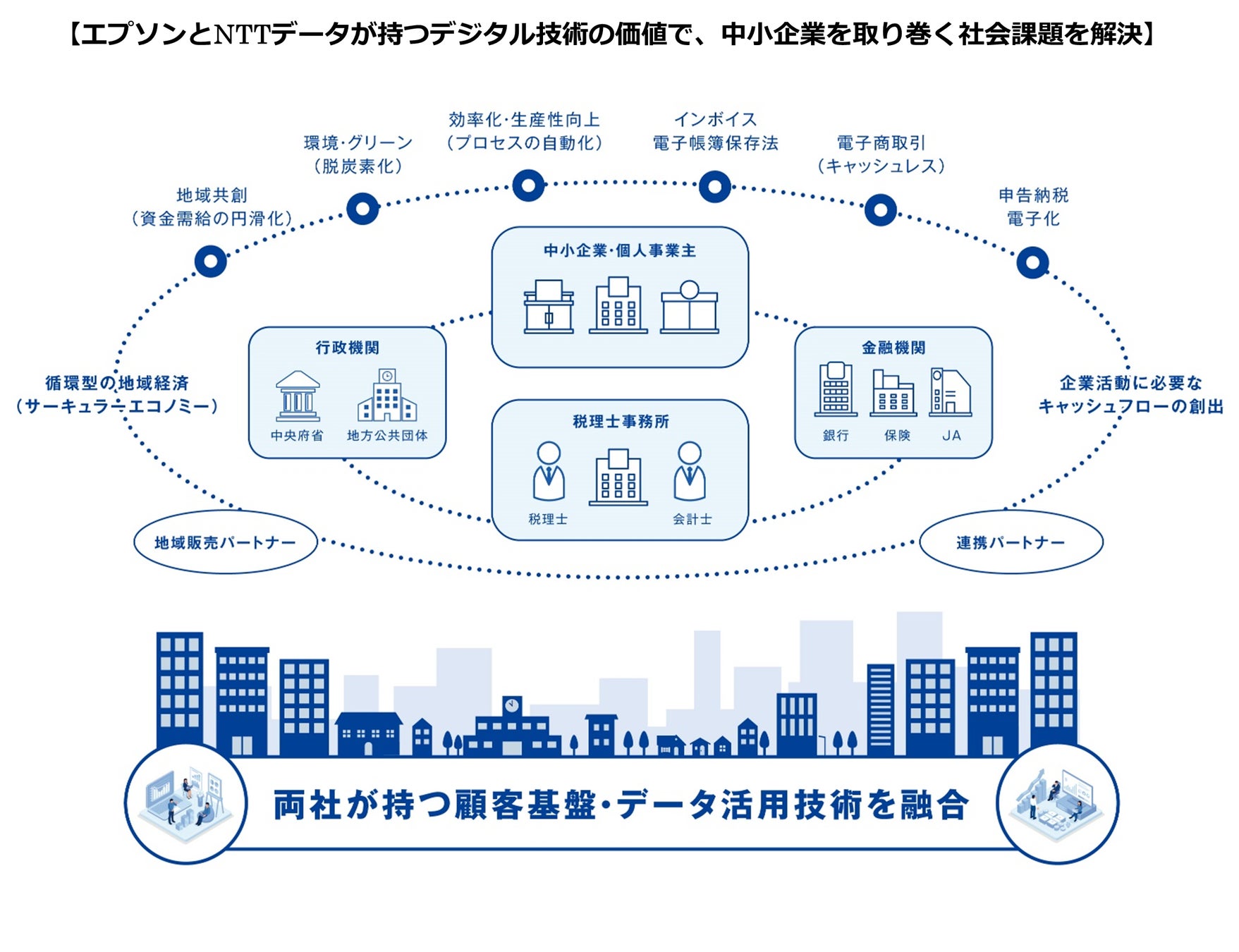 エプソンとNTTデータが、中小企業を取り巻く社会課題の解決に向けた協業に合意